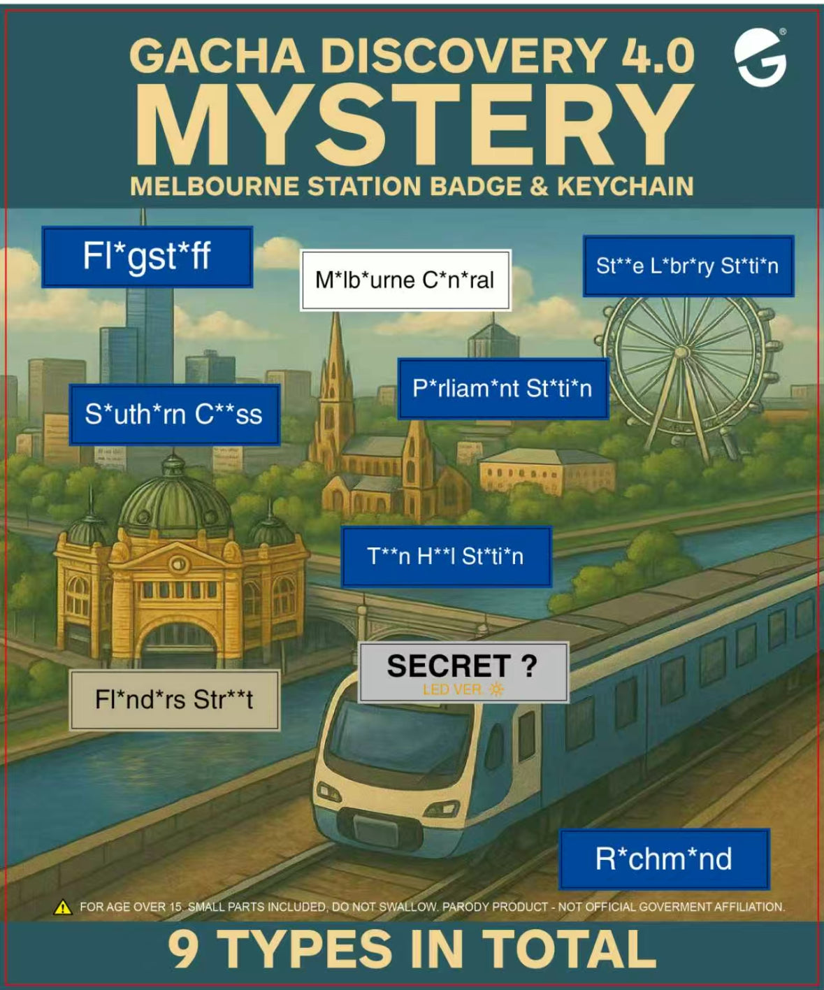 MYSTERY OF MELBOURNE STATION BADGE & KEYCHAIN
